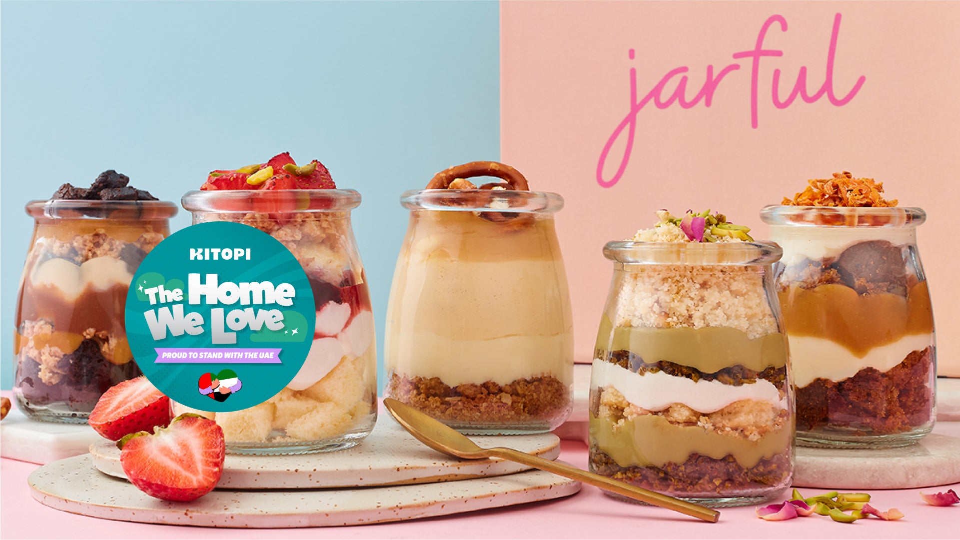 Layers of Oreo cookies, dark chocolate sauce, baked Oreo cheesecake and dark chocolate sponge, topped with a mini Oreo.AED 25Strawberry Victoria Cake Jar