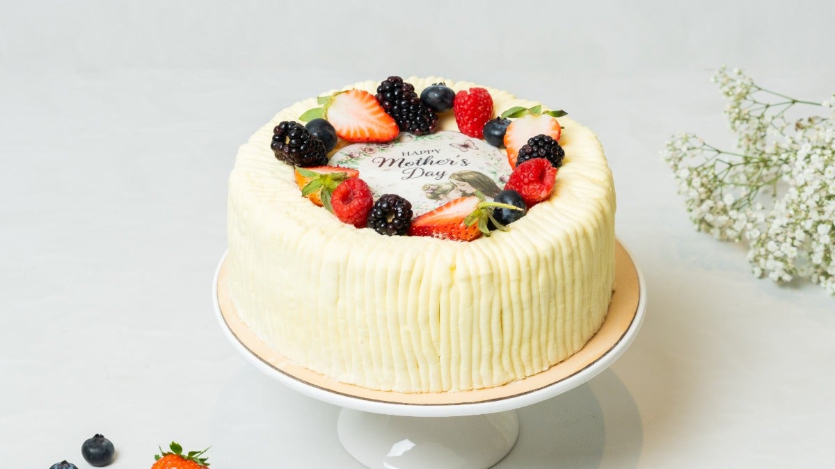 Light vanilla sponge layered with cream and topped with fresh mixed fruitsSize: 8–10 servings 1.25Kg