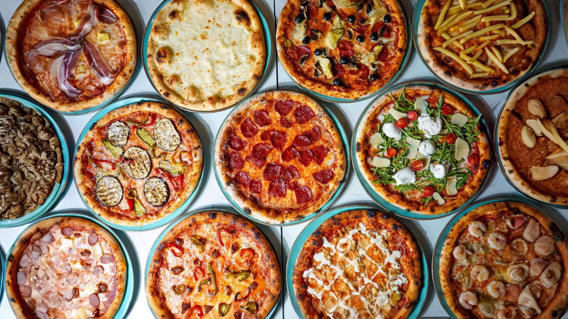 Fun and savory pizza topped with sliced hot dogs and crispy french fries, all on a classic tomato sauce and mozzarella base.AED 55Pizza Fantasia