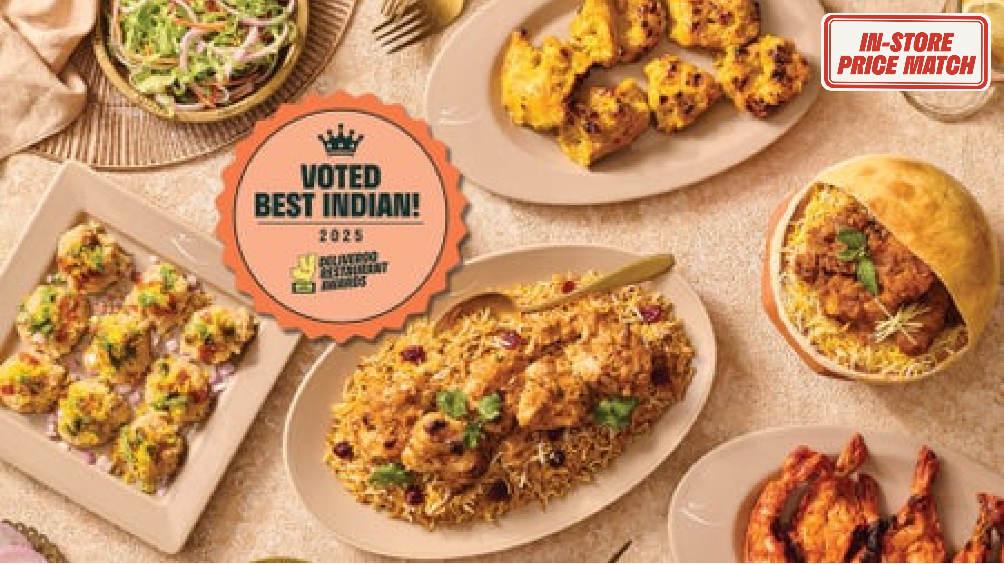 Chargrilled jumbo prawns, layered with spices and aromatic basmati rice cooked on dum in a sealed earthen pot.AED 85Jhinga Hyderabadi Biryani