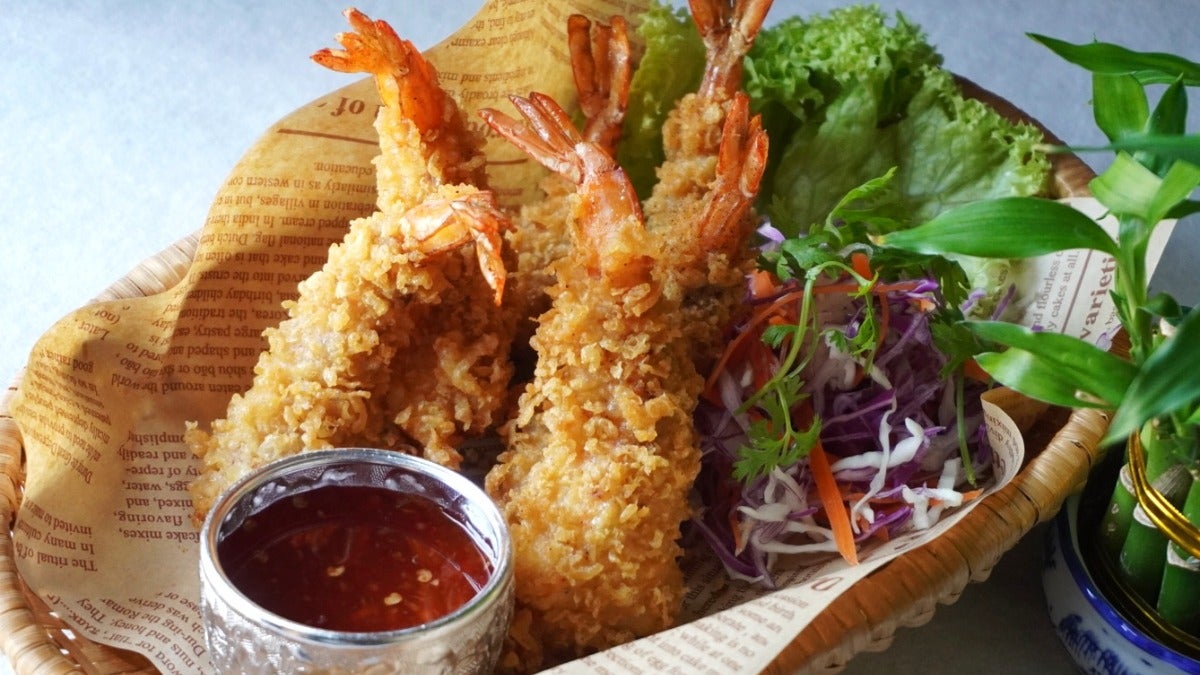Marinade Chicken On Skewers, Served With Peanut Sauce.AED 4535% offShrimp Tempura