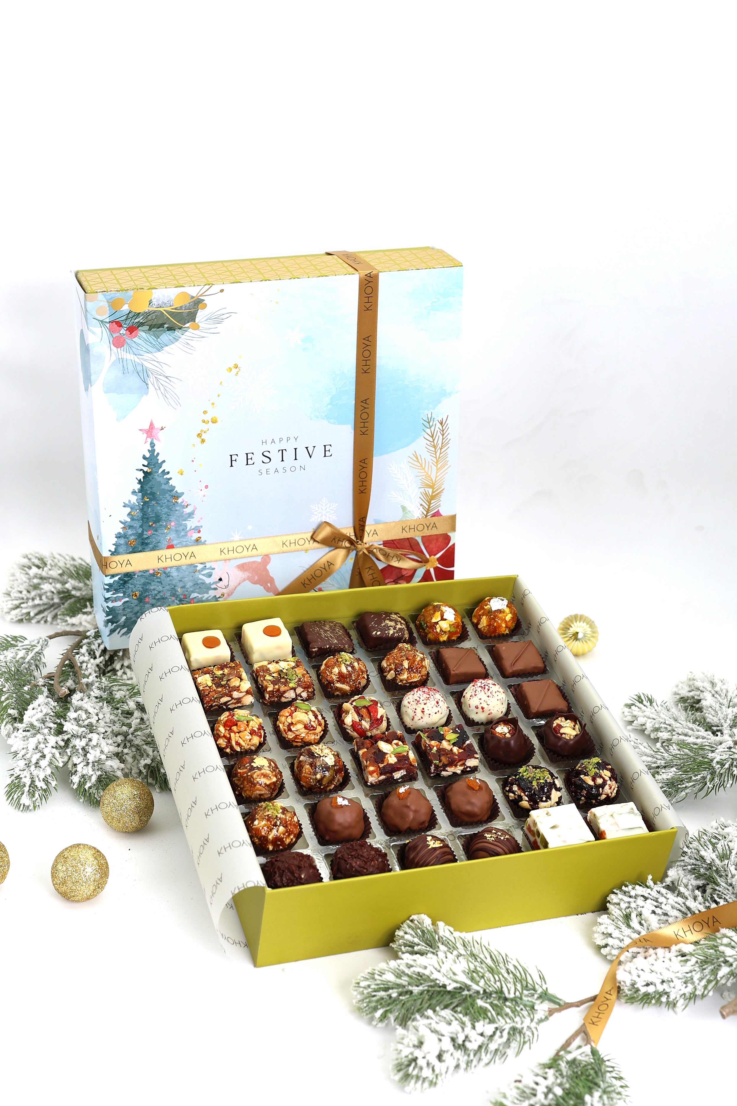 Celebrate the season with our exclusive festive edition chocolate box. Handcrafted with premium ingredients and filled with rich, indulgent flavours, each piece brings a perfect balance of tradition and modern luxury. A delightful gift box of 16 chocolates curated specially for the festive moments.AED 210Box of 36