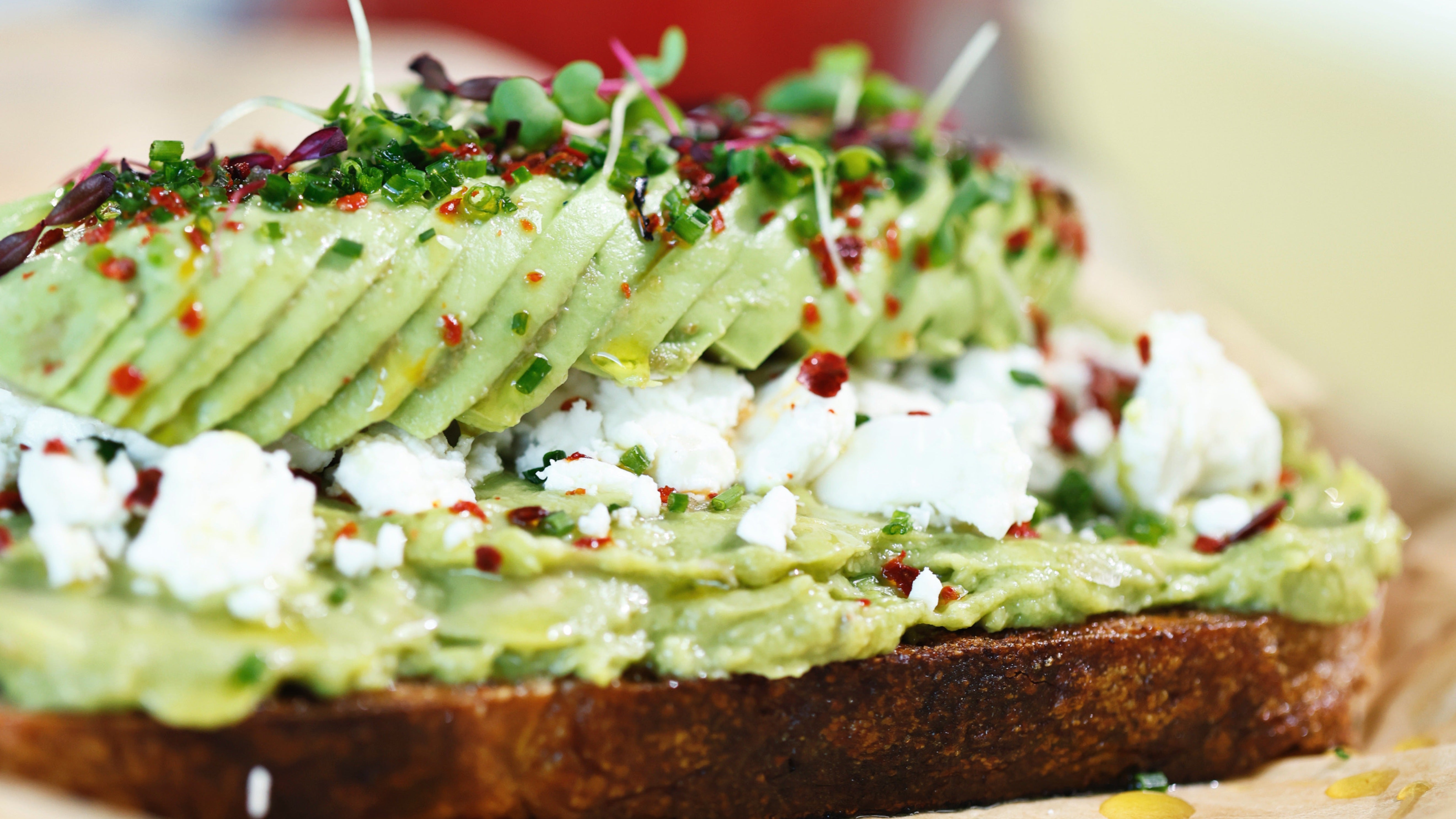 scrambled eggs, Monterrey Jack, jalapeño mayo, brioche bunAED 75Eggs & Avocado toast