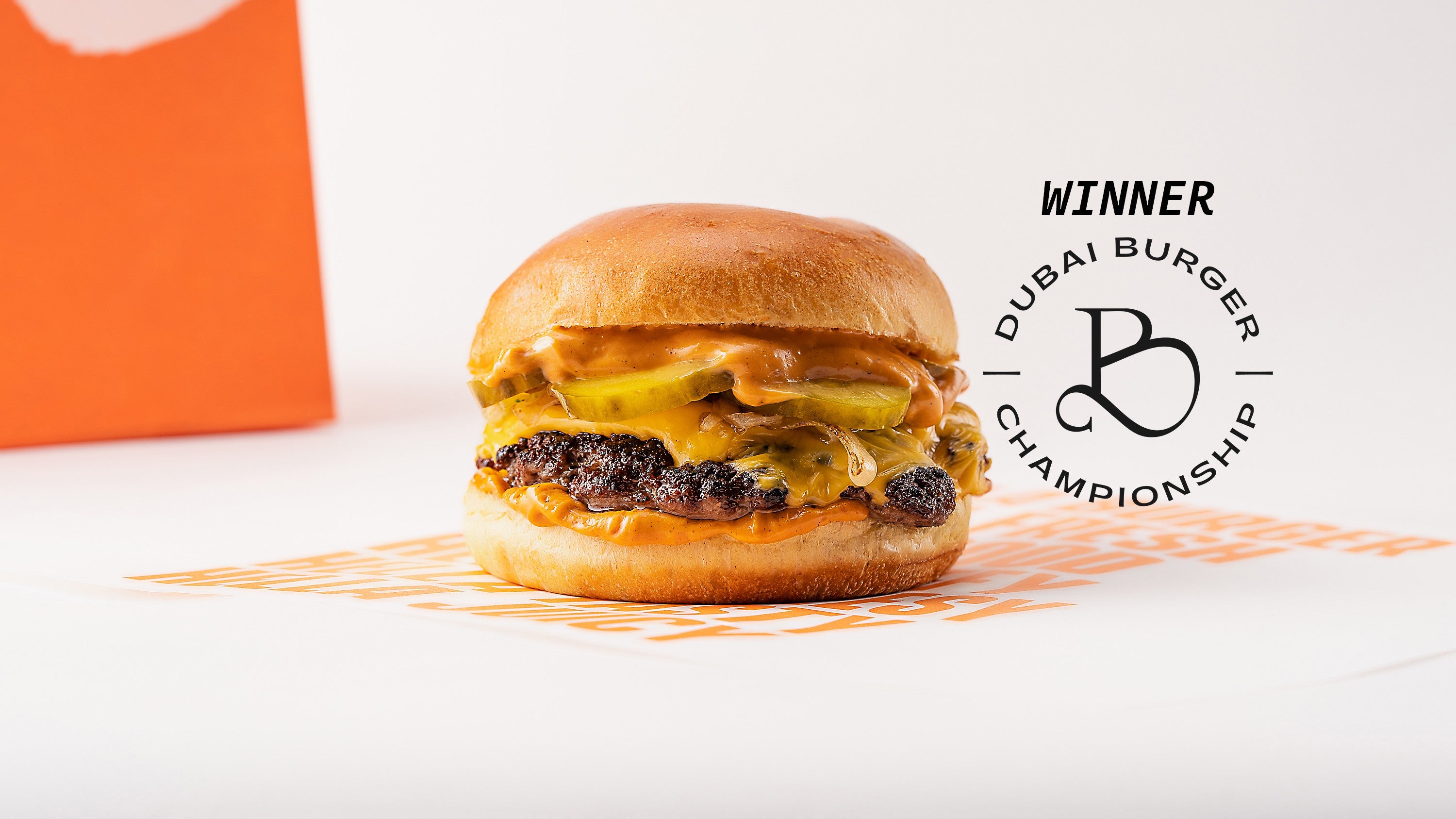 Impossible® plant-based beef smashed thin, brioche bun, cheddar cheese, grilled onions, pickles, Hella sauce.AED 53
