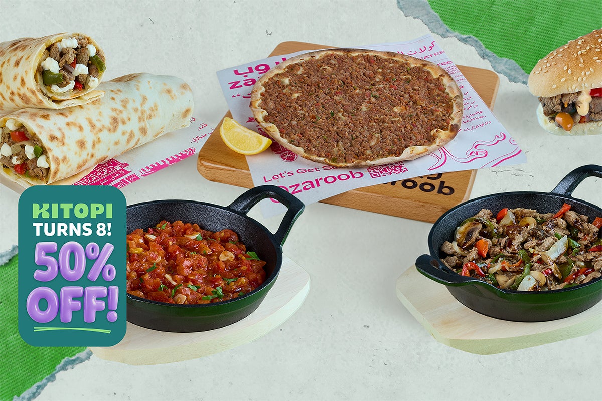 Charcoal-grilled kafta served with Zaroobs French fries, mixed pickles, biwaz, hummus, grilled tomatoes, grilled onions, and fresh bread on the side. Serves 4-6 PeopleAED 155