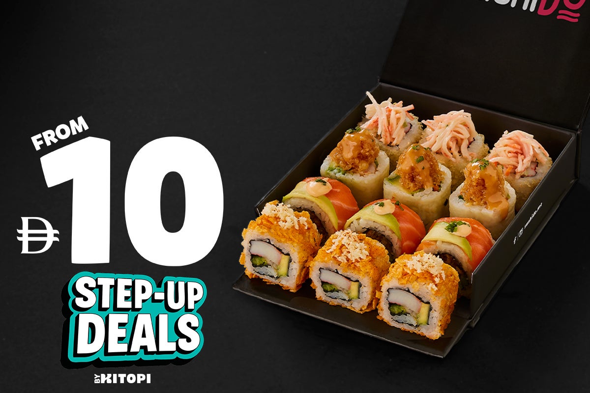 3 Supremo Rolls, 3 Crispy California Rolls, 3 Chips Oman Rolls, 3 Avo-Veggie Rolls, 3 San Francisco Rolls, 3 Chickago Rolls, 3 Tropical Tempura Rolls and 3 Fuji Rolls.AED 108