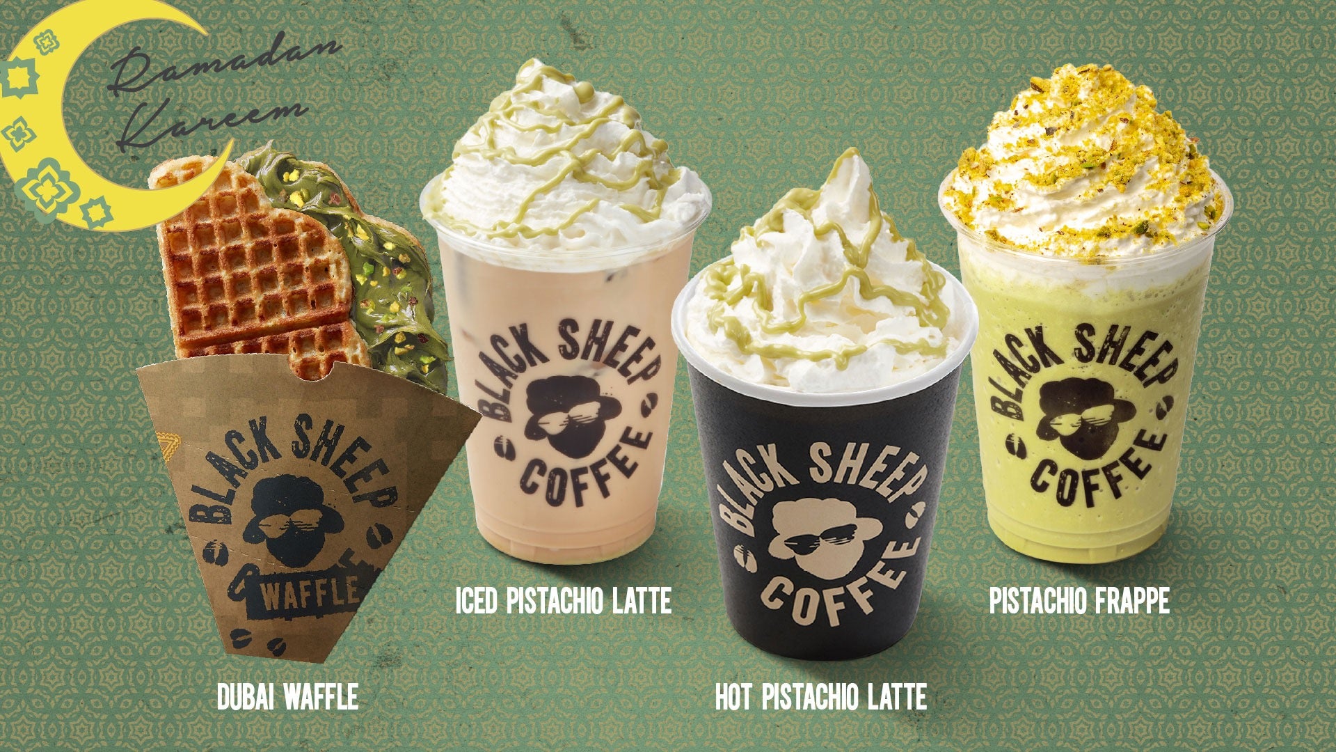 Norwegian waffle dough, Pistachio Kunafa & NutsAED 29PISTACHIO LATTE