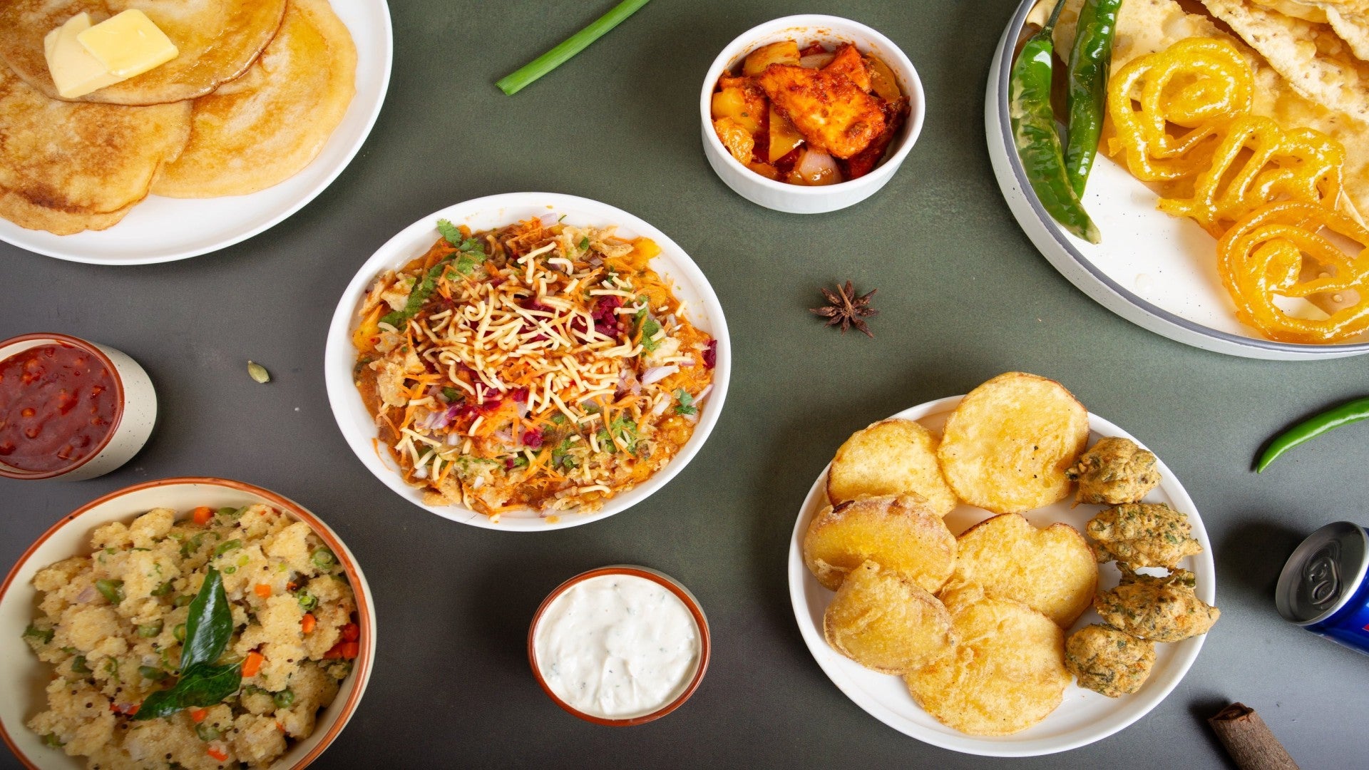 Poha and Samosa feast with fresh milk karak chai (6 oz)AED 32.40Jalebi + Fafda + Chai