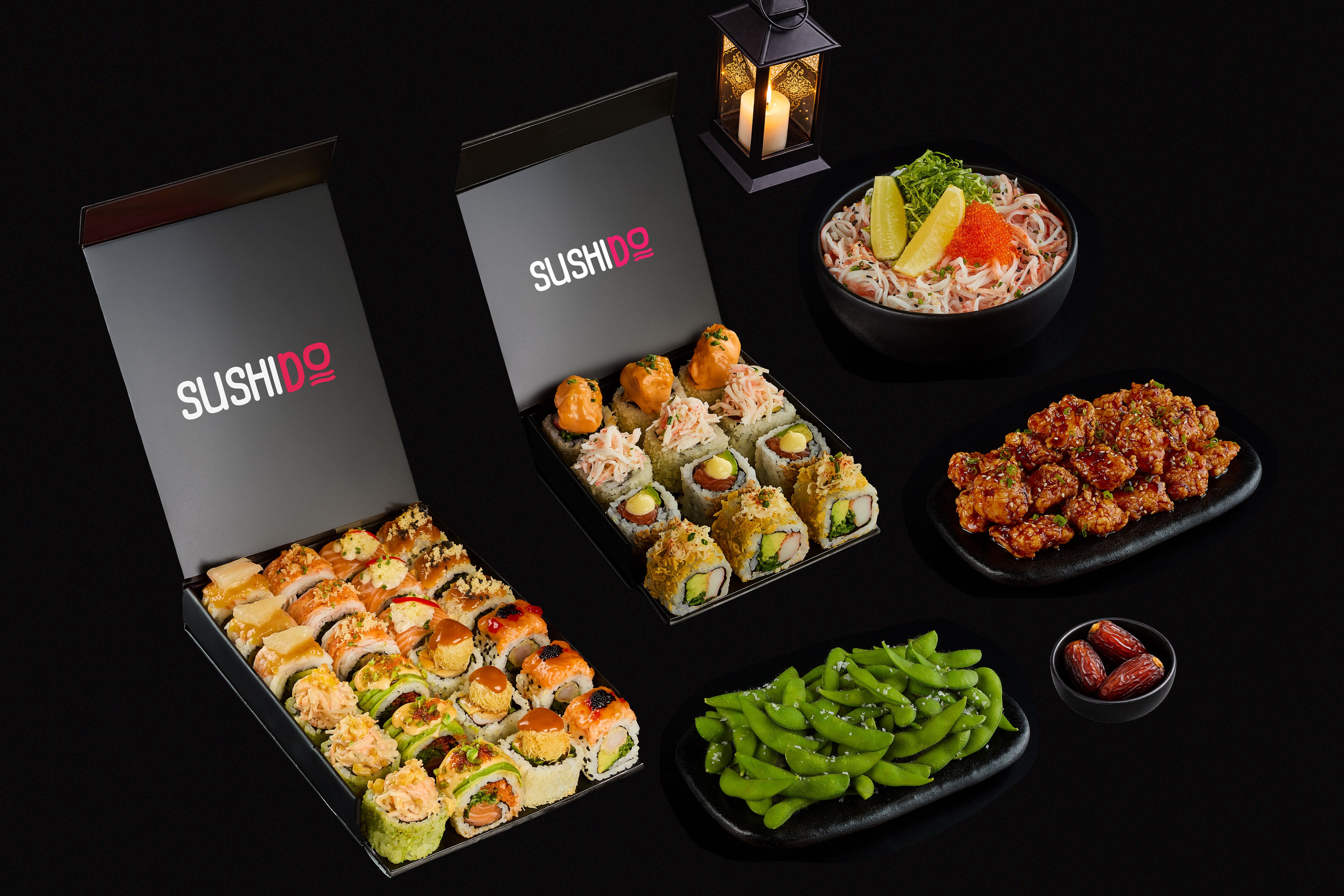 Enjoy 24 pcs sushi, 2 sides of your choice and 3 dates. Includes 3 K-pop fusion rolls, 3 Tropical blaze rolls, 3 Salmon avocado rolls, 3 Volcano rolls, 3 Salmon drip rolls, 3 California rolls, 3 Super shrimps rolls and 3 Oman chips rolls.AED 109Ramadan Gathering Combo for 3