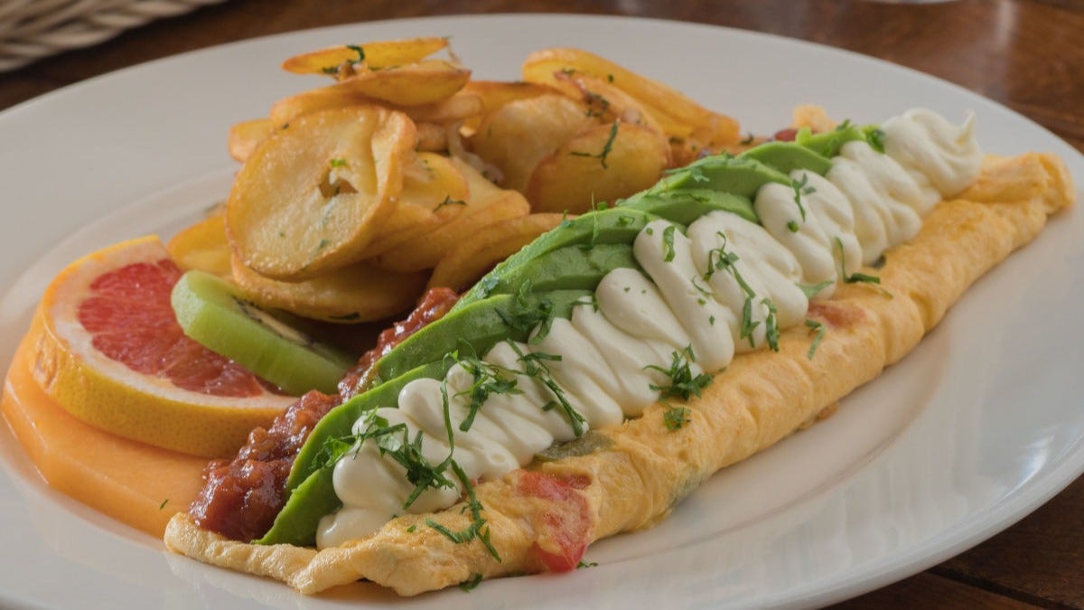 Highly rated· Scrambled Omega-3 enriched eggs with sautéed spinach, Canadian Angus beef bacon and three kinds of cheese: cheddar, Swiss and Gruyère, all folded into our tender crepe and topped with our hollandaise sauce.AED 5920% offEggspectation Omelette