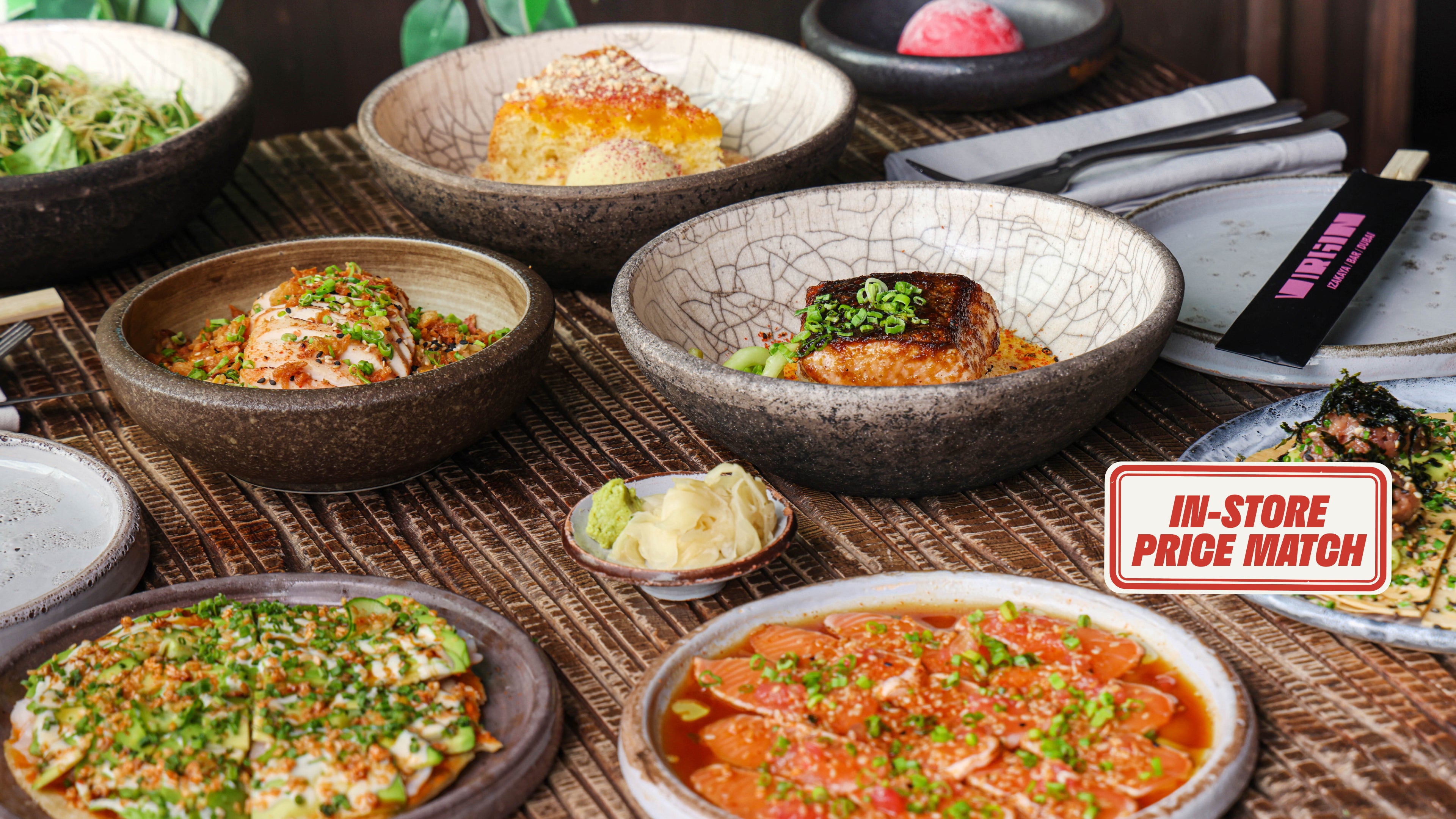 Bluefin Tuna, ponzu sauce, sesame seeds, spring onions, tomato pulp, togarashi spicesAED 120Salmon & Tuna Tataki