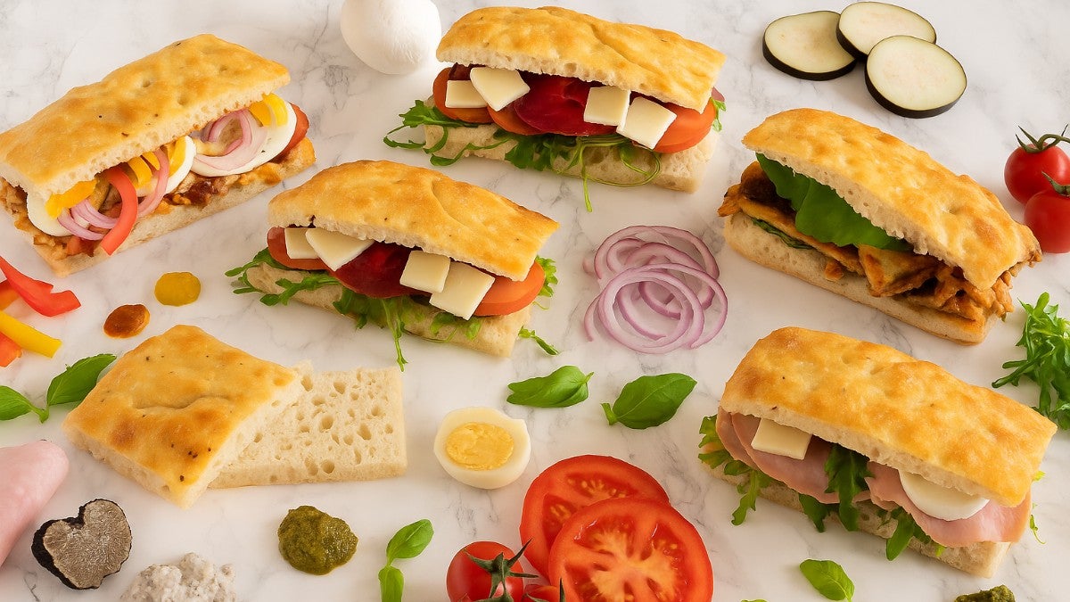 Artisanal focaccia sandwiches, crafted with fresh ingredients and bold Italian flavors