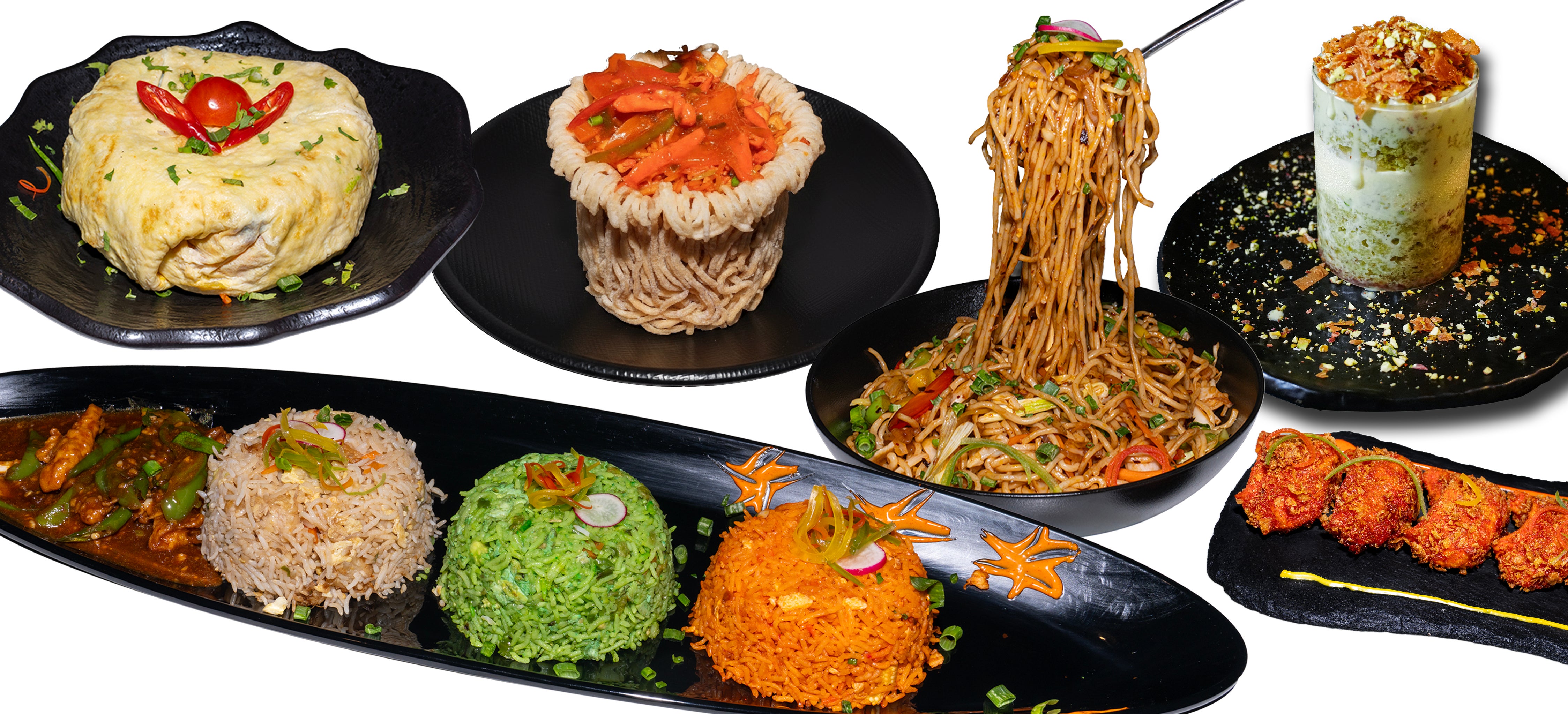 Tri Flavor Sauce Tossed With Soft Shell Crispy Corn, Chilly,AED 32Schezwan Corn And Cheese Balls