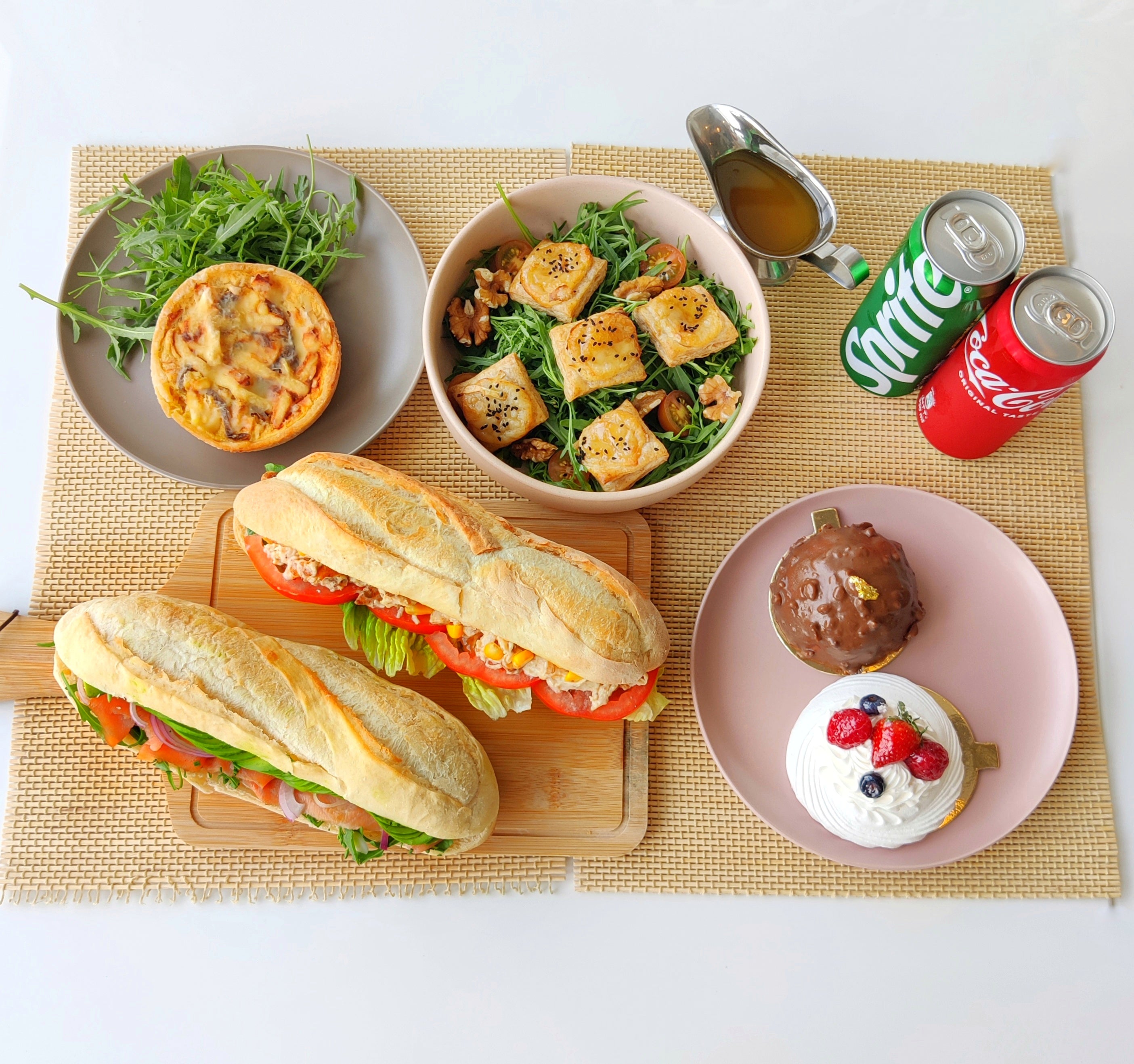 Turkey Ham & Butter SandwichFresh baguette filled with turkey ham, butter, lettuce, tomatoes, sliced boiled eggs, and mayonnaise. Generous, fresh, and satisfying.AED 30.80AED 44Smoked Salmon & Avocado Sandwich