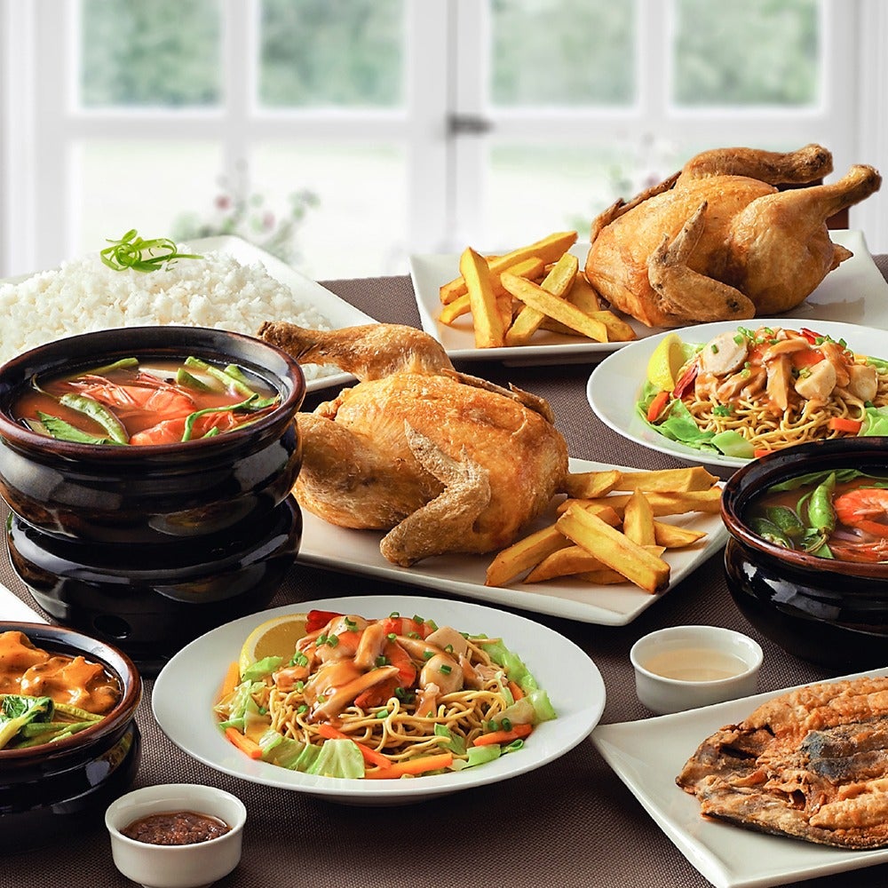 Maxs Fried Chicken, Sinigang na Tiyan ng Bangus, Chopsuey, Beef Binagoongan, Pancit Bihon, Rice and Buko PandanAED 590Table A Half