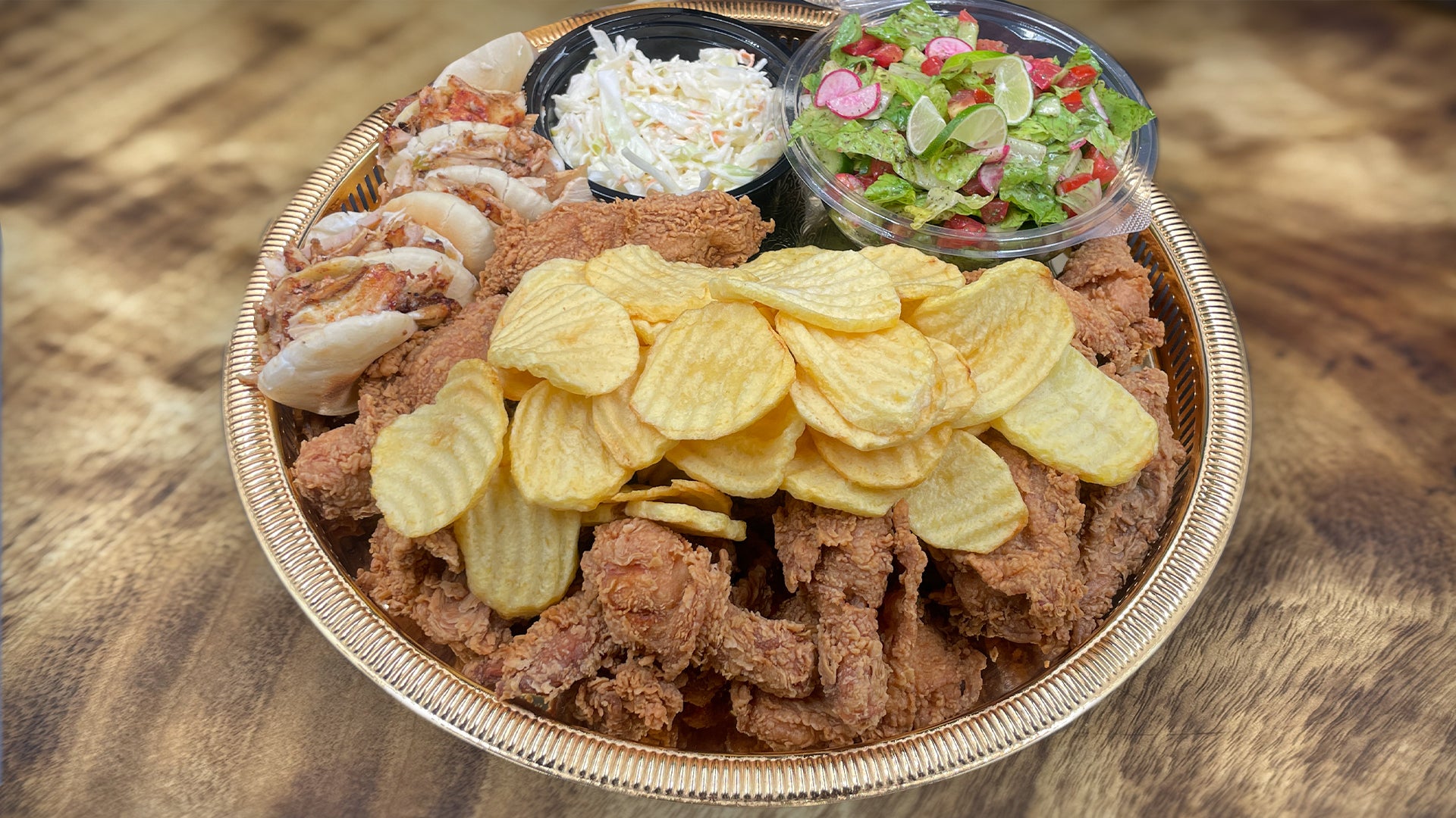 Sharing Combo: 16-Piece Broasted Chicken With French Fries, 6 Mini Chicken Shawarmas, A Bowl Of Coleslaw, And An Arabic Salad.AED 200Crispy Chicken Combo (16 Pcs)