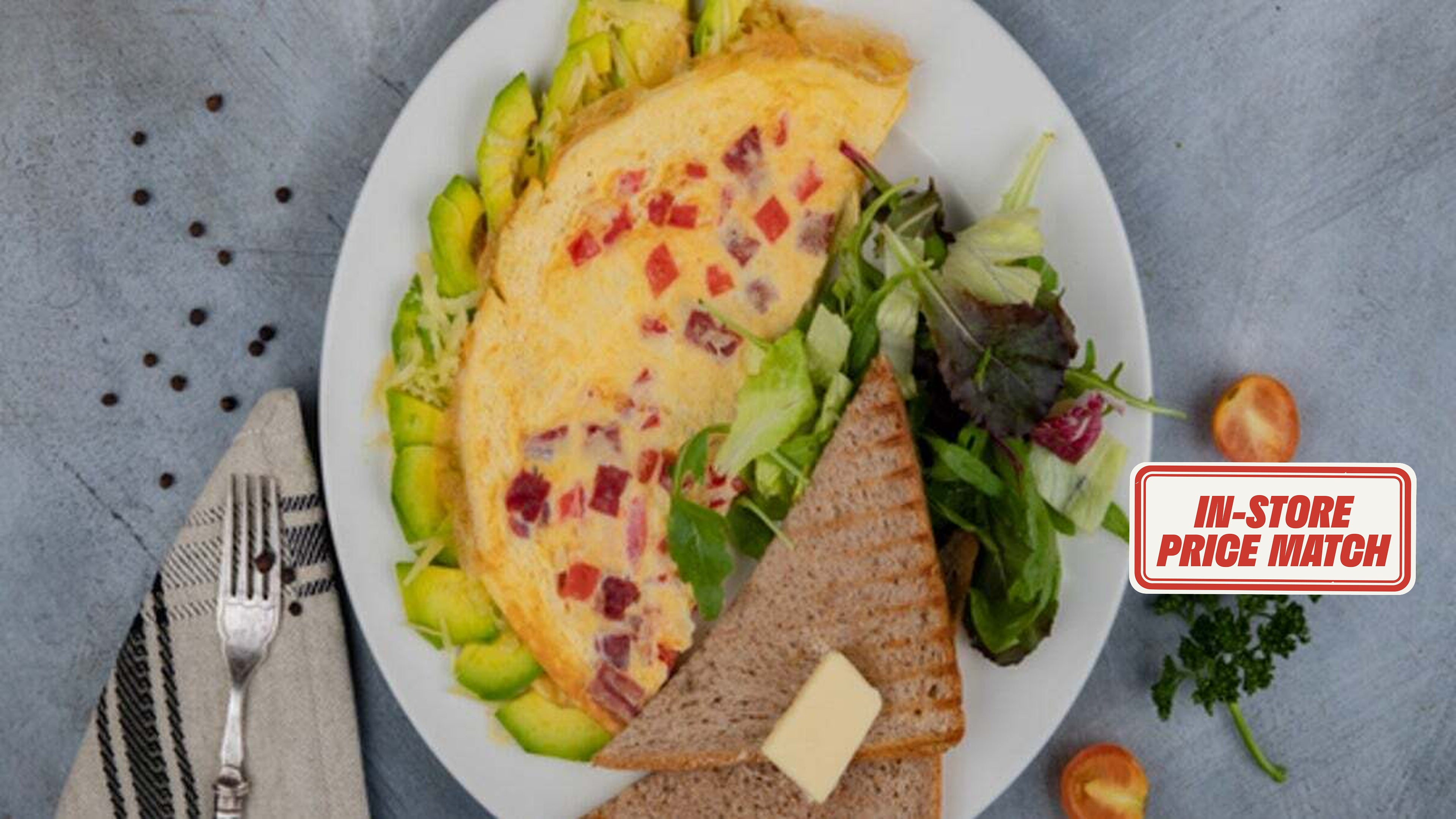 Topped with banana, blueberry, strawberry, kiwi and muesli.AED 57Spanish Omelette